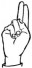 На ћирилици написано УНА ГУЖВИЋ састоји се из 9 слова [?]. Исписано ћириличном једноручном азбуком за глувонеме: